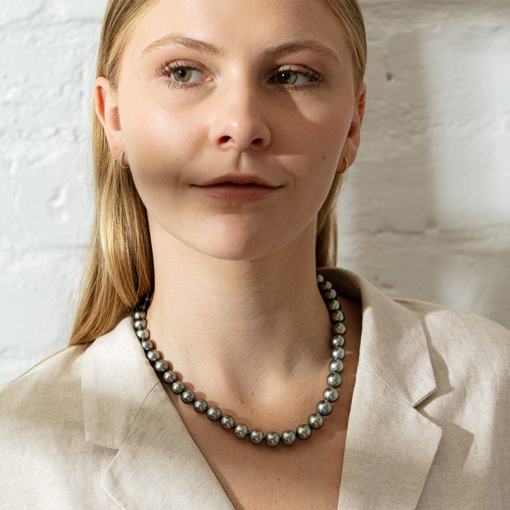 18ct White Gold Cultured Black 9.2-10.5mm Pearl Necklace 44cm