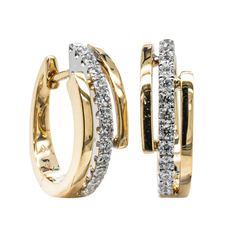 Shine with these spectacular 18ct yellow and white gold sparkling diamond hoops. Heads will turn to admire the impressive precious white diamond in these beautiful earrings. Let the compliments begin!