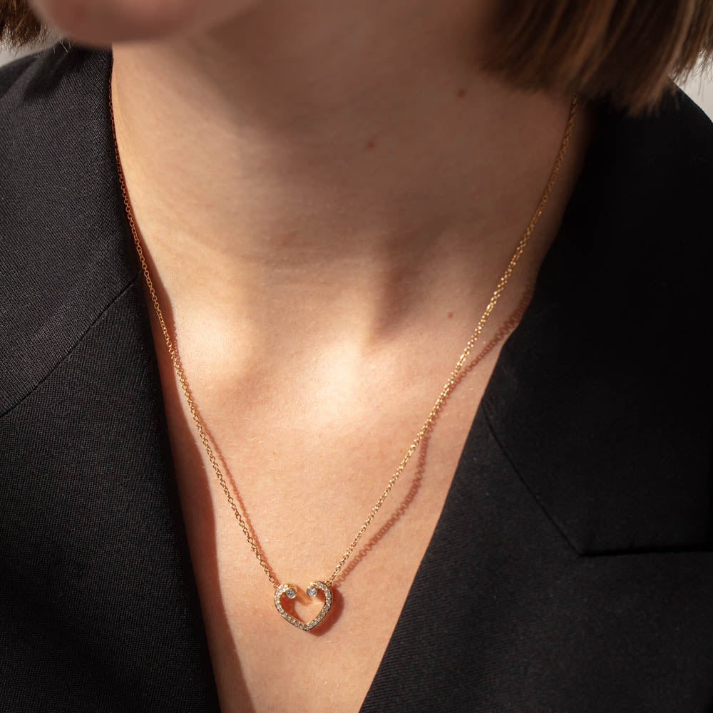 The quintessential symbol of love, this open heart koru diamond pendant is a meaningful reminder of endless love. The Koru resembles the concept of ever changing life and also staying the same.