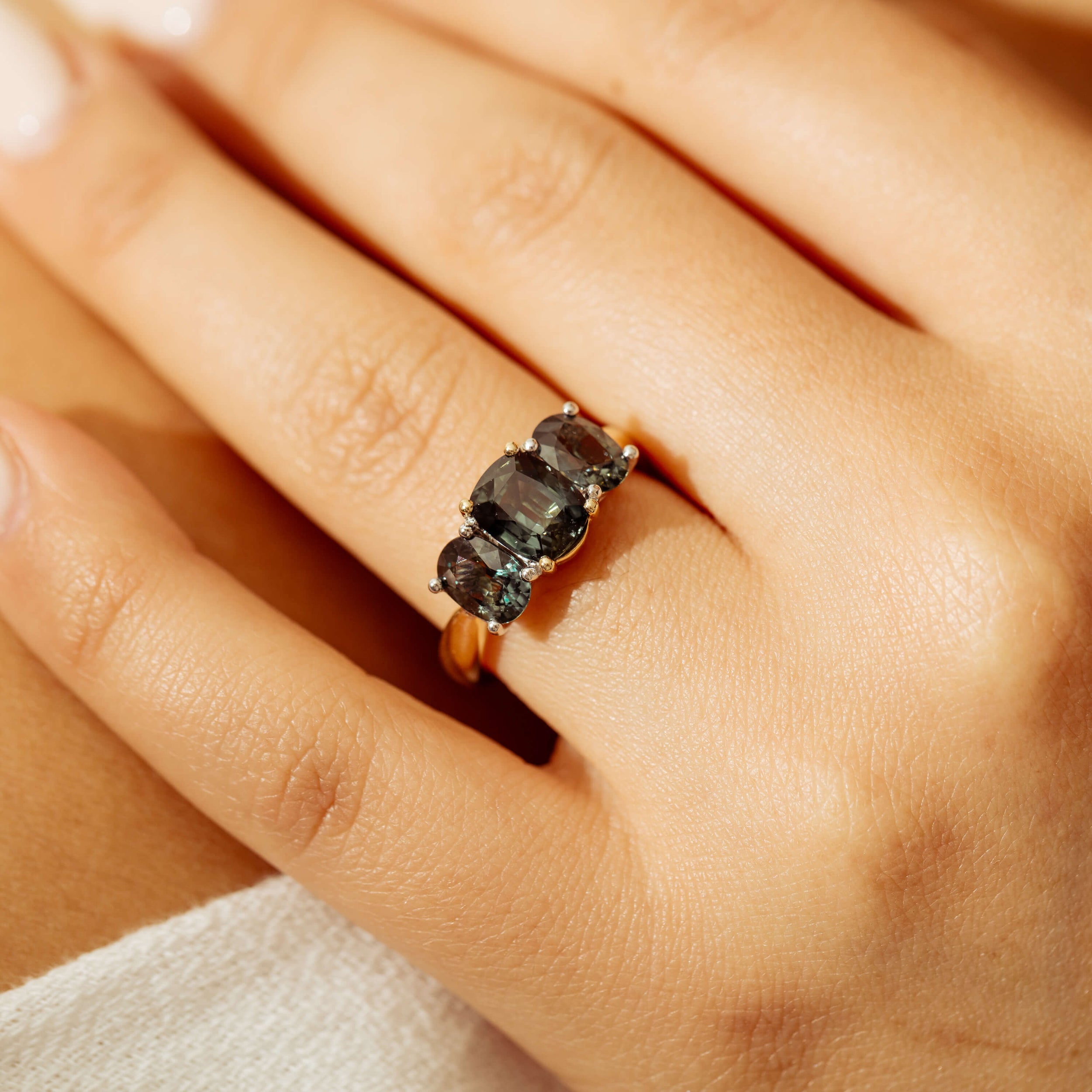 18ct Yellow Gold Green Sapphire Three-Stone Ring