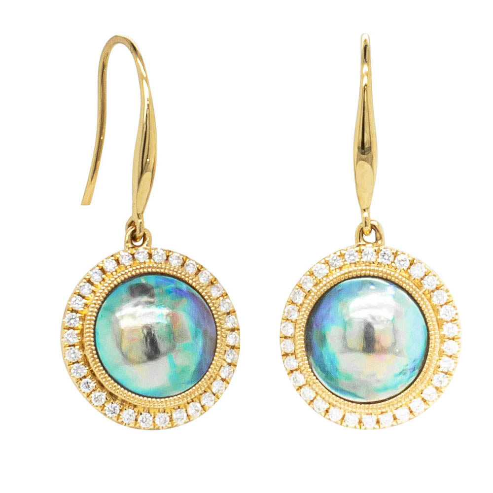 18ct Yellow Gold Paua Pearl & Diamond Earrings