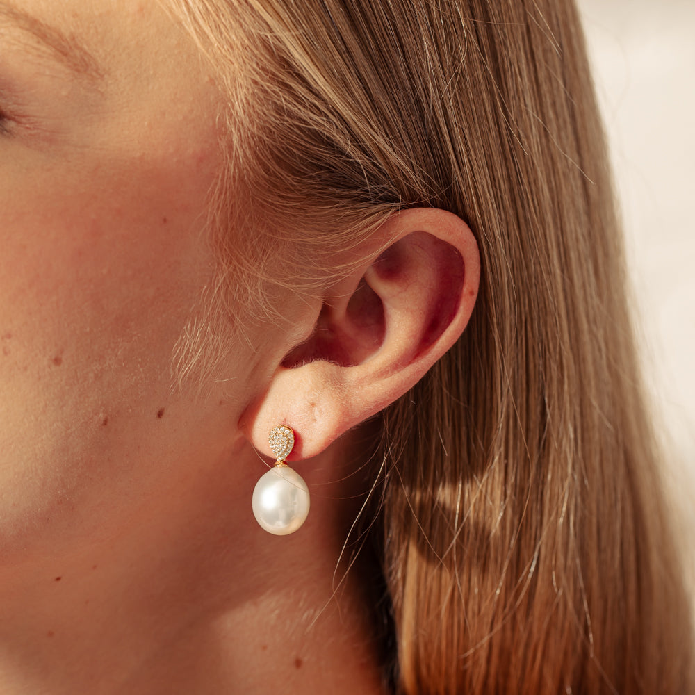 18ct Yellow Gold 12.5mm South Sea Pearl & Diamond Aegean Earrings