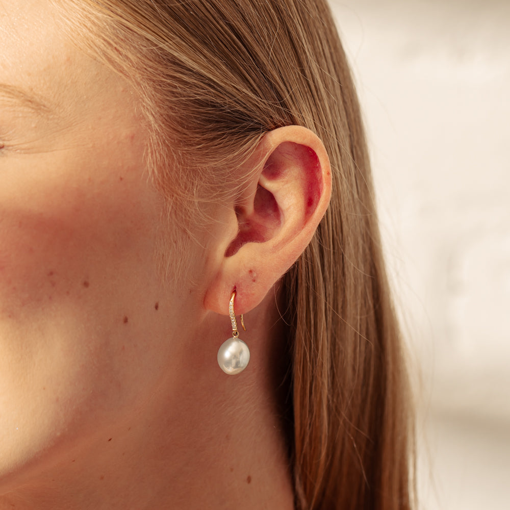 18ct Yellow Gold South Sea 10.8mm Pearl & Diamond Earrings