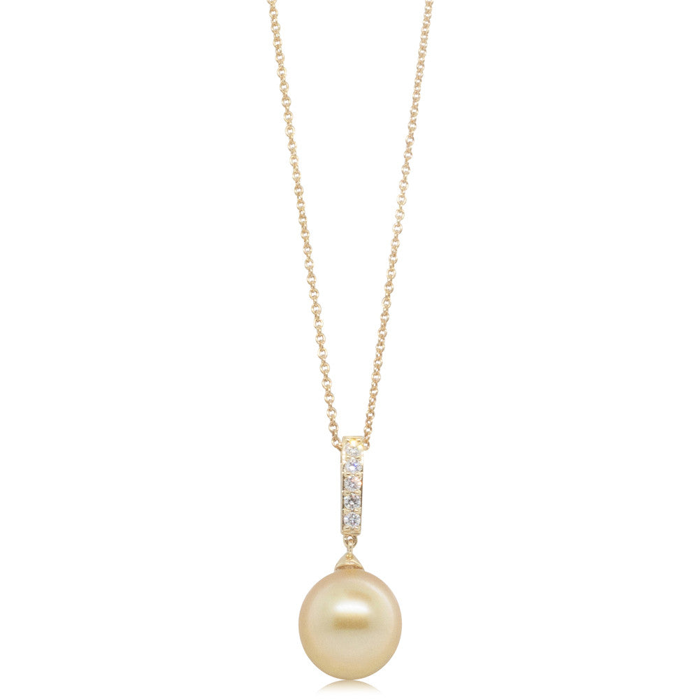 A beautiful pearl pendant for your love! This luscious pendant boasts one 11.9mm south sea pearl resting from a delightful diamond set drop. Carefully crafted from luxurious 18ct yellow gold, this is sure to be a piece she will treasure forever.