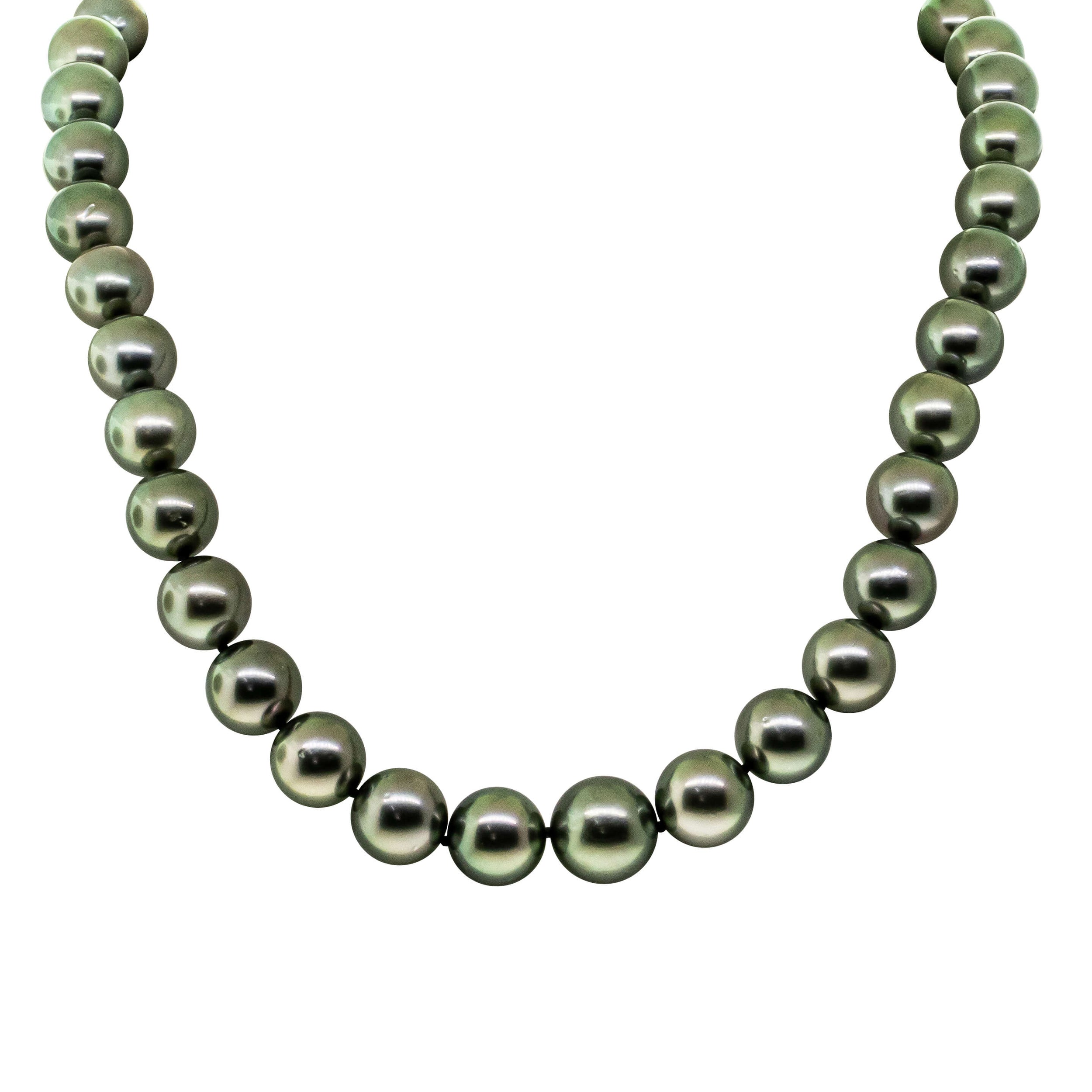 18ct Yellow Gold Tahitian Black 10-12mm Pearl Strand