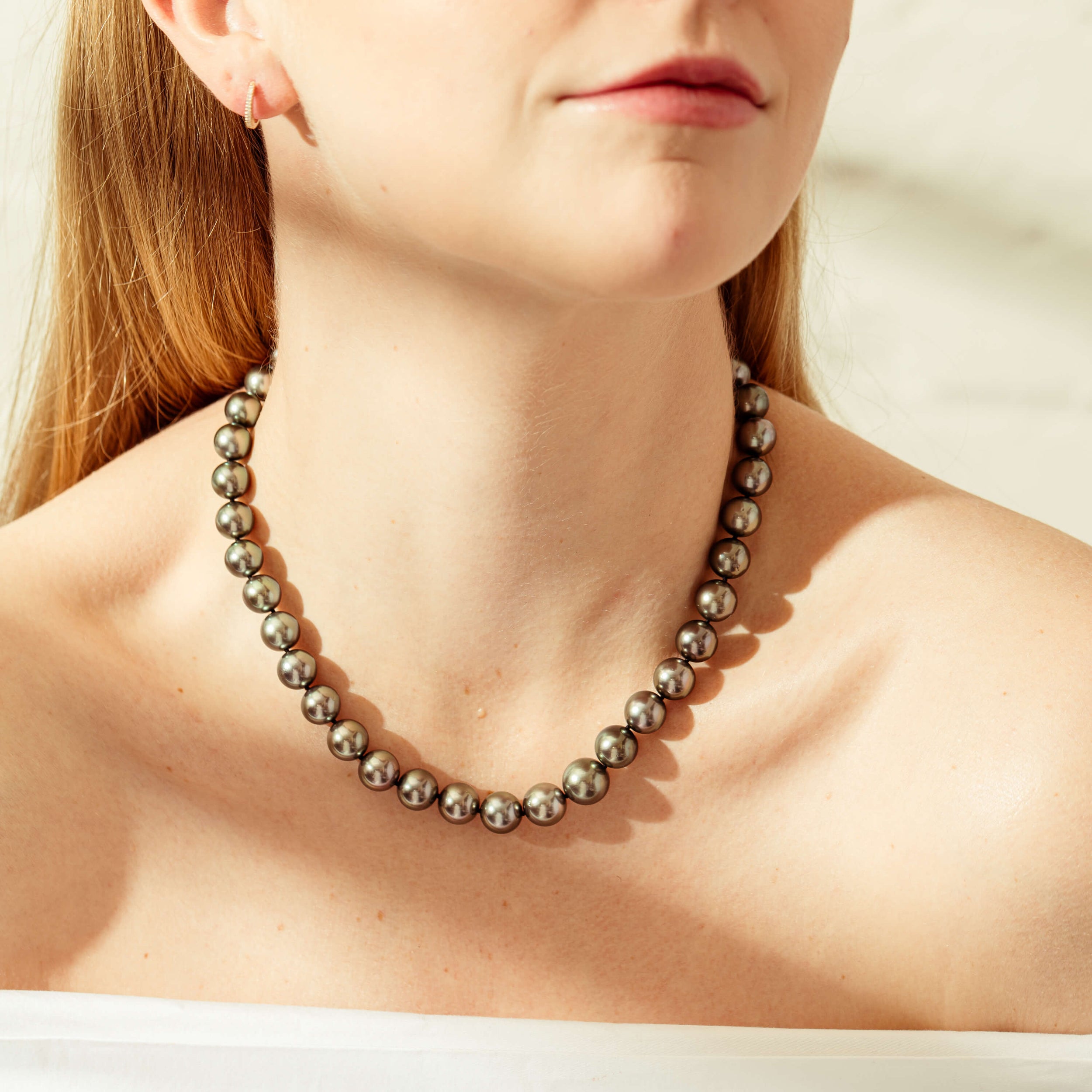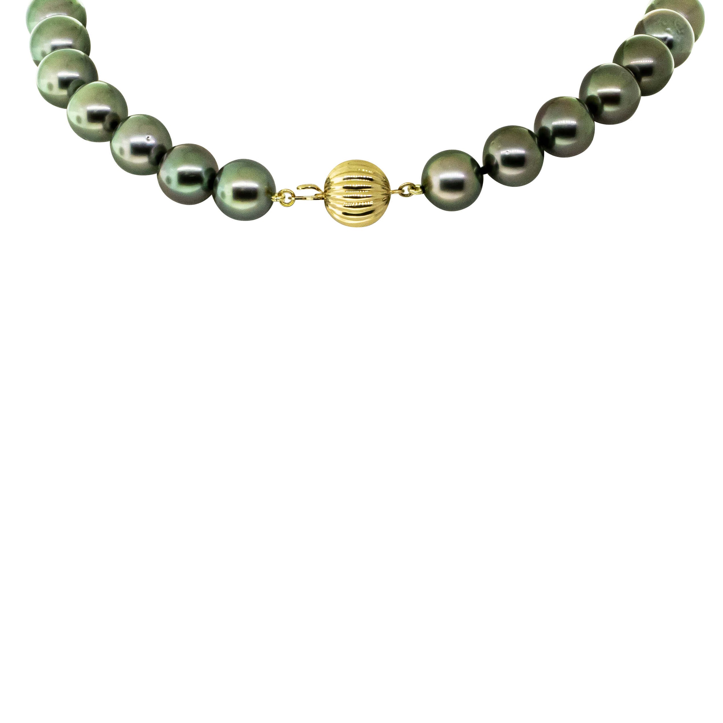 This stunning 18ct yellow gold strand features 41 graduated cultured Tahitian black pearls for a sleek and sophisticated finish. The 18ct yellow gold ball clasp is a fluted ball style and it upholds to the highest standards of quality, providing a secure and reliable closure. The perfect accessory for any special occasion.