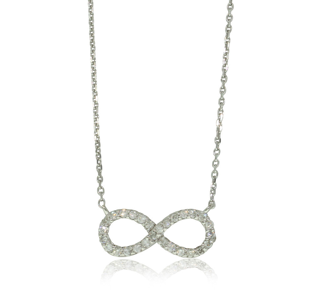 The symbol of your endless love, she will adore this diamond infinity pendant. Crafted in 9ct white gold, this twinkling pendant boasts of sparkling diamonds.