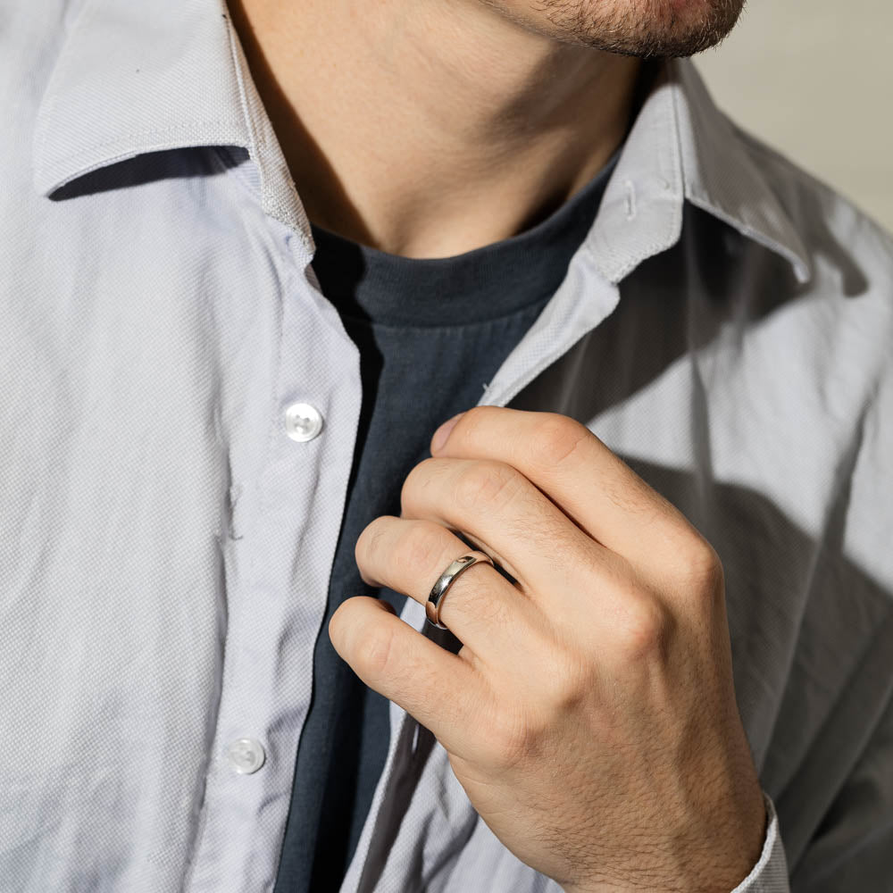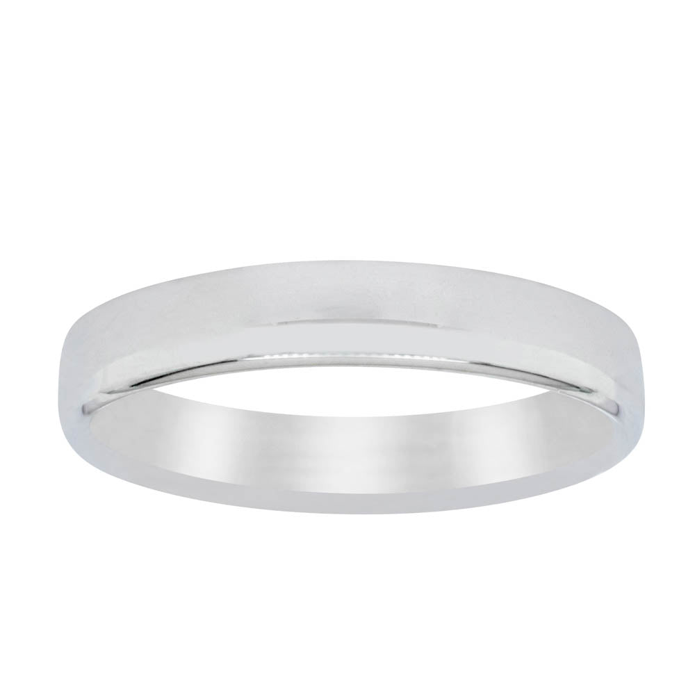 This 9ct white gold ring is 4mm wide and has a slightly rounded profile. Available in a standard polished finish (as pictured) or brushed, you can't go past this classic piece.