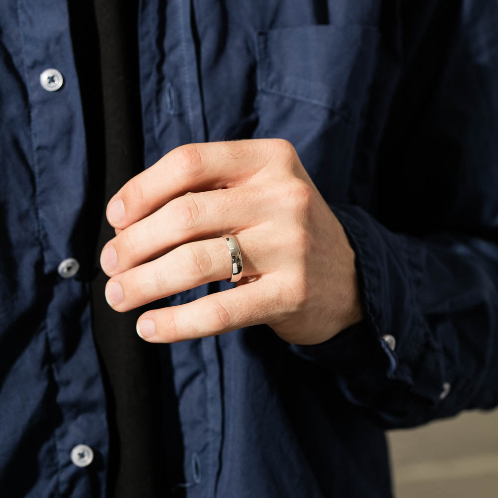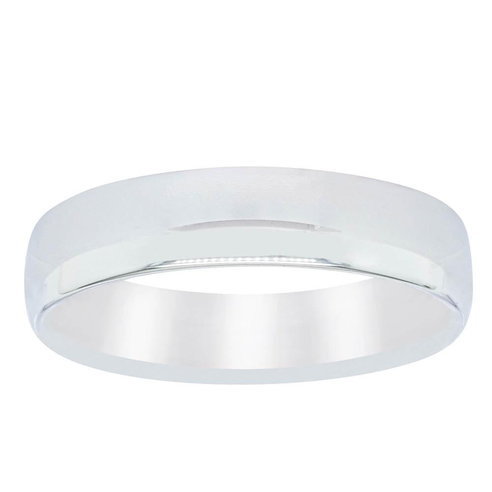 This 9ct white gold ring is 5mm wide and has a slightly rounded profile. Available in a standard polished finish (as pictured) or brushed, you can't go past this classic piece.