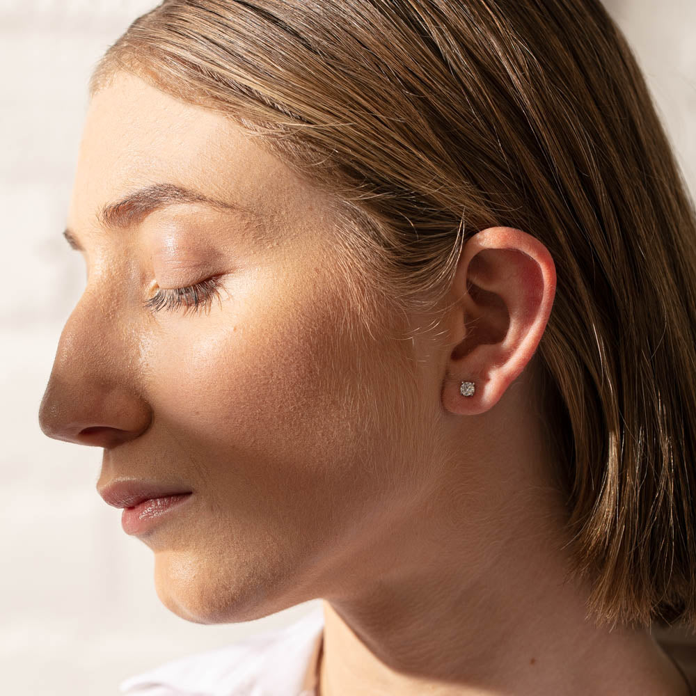 Elevate your everyday with the subtle sparkle of these gorgeous solitaire Ava diamond stud earrings featuring a pair of round brilliant cut diamonds that capture the light from every angle. Set in 9ct white gold.