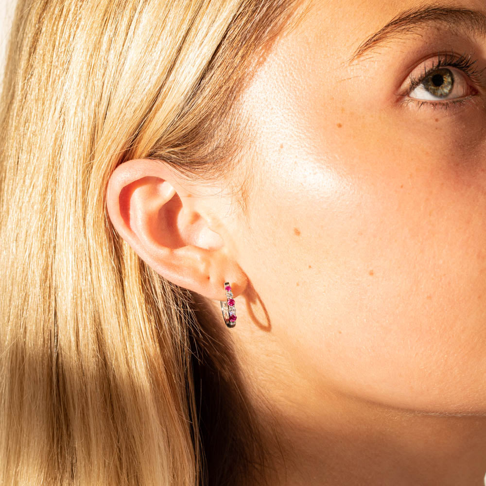 9ct White Gold Ruby & Diamond Huggie Earrings