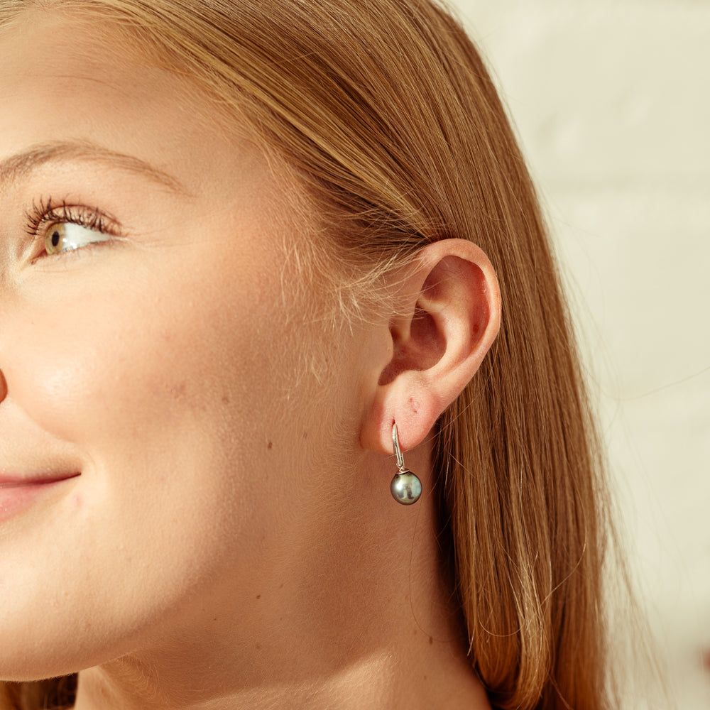 The perfect addition to your collection... This dazzling pair of pearl earrings are crafted in beautiful 9ct white gold and feature two luxurious peg set Tahitian black pearls which hang from hooked ear-wires. Every girl needs a pair of pearls!