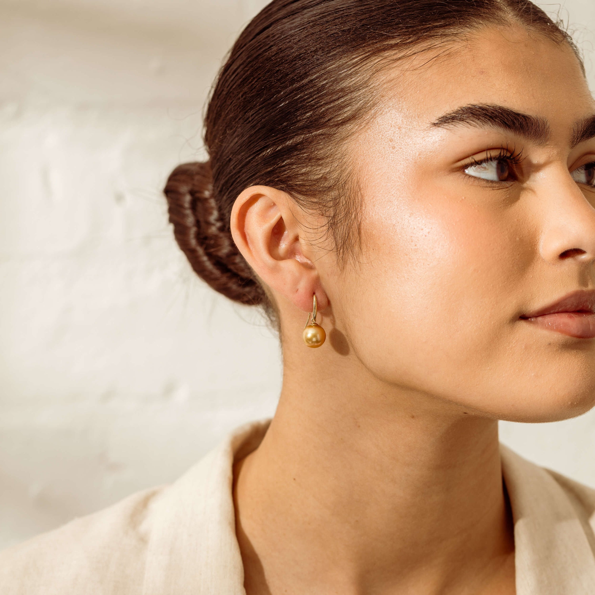 Illuminate your look with these exquisite South Sea Golden Pearl earrings, artfully crafted in radiant 9ct yellow gold. Featuring lustrous, peg-set pearls suspended from sleek hooked earwires, each earring showcases the natural beauty and rich colour of golden South Sea pearls.