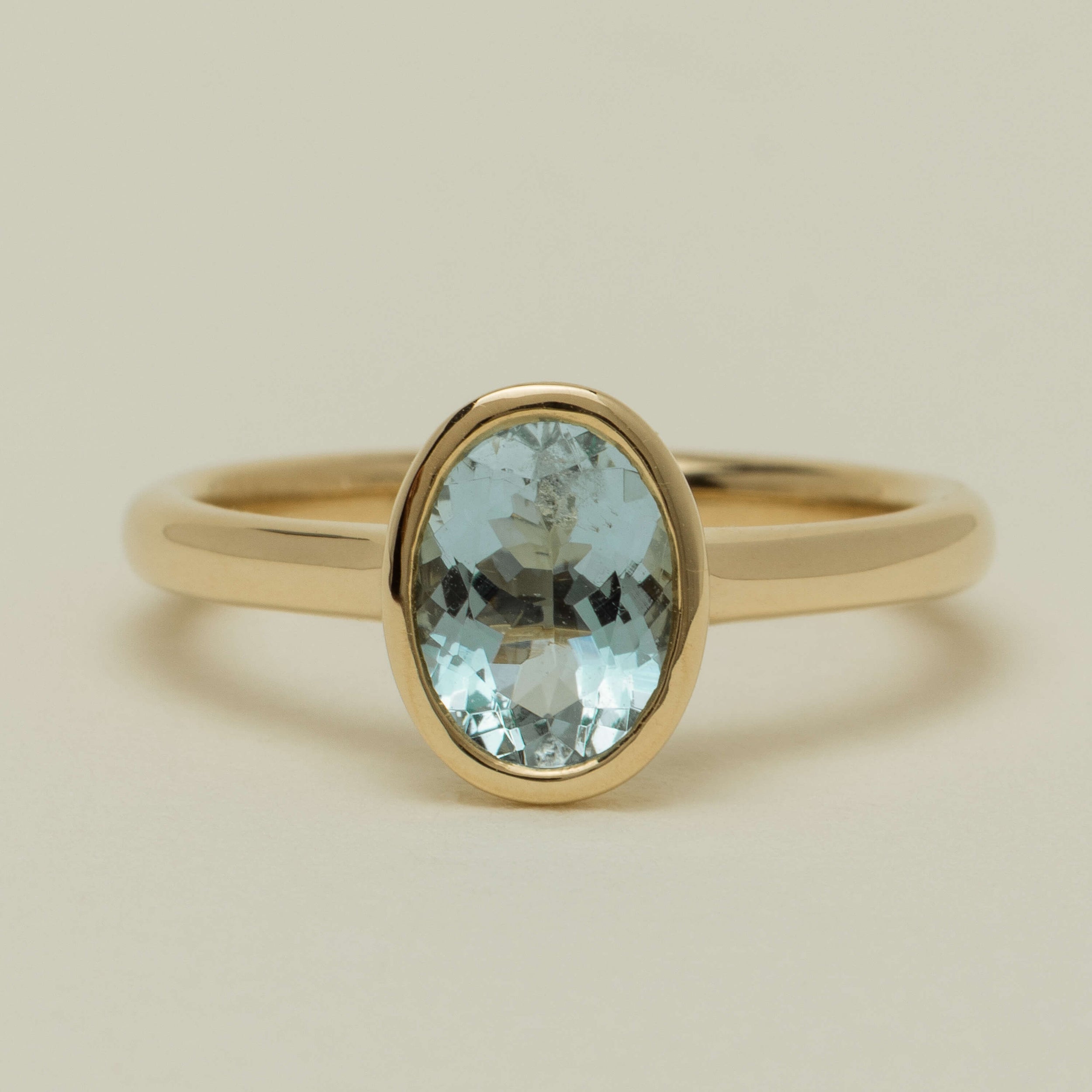 9ct Yellow Gold Aquamarine Rubover Set Ring