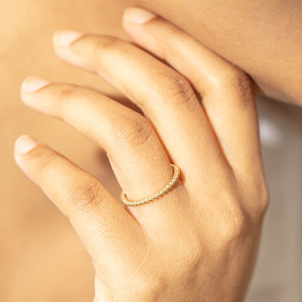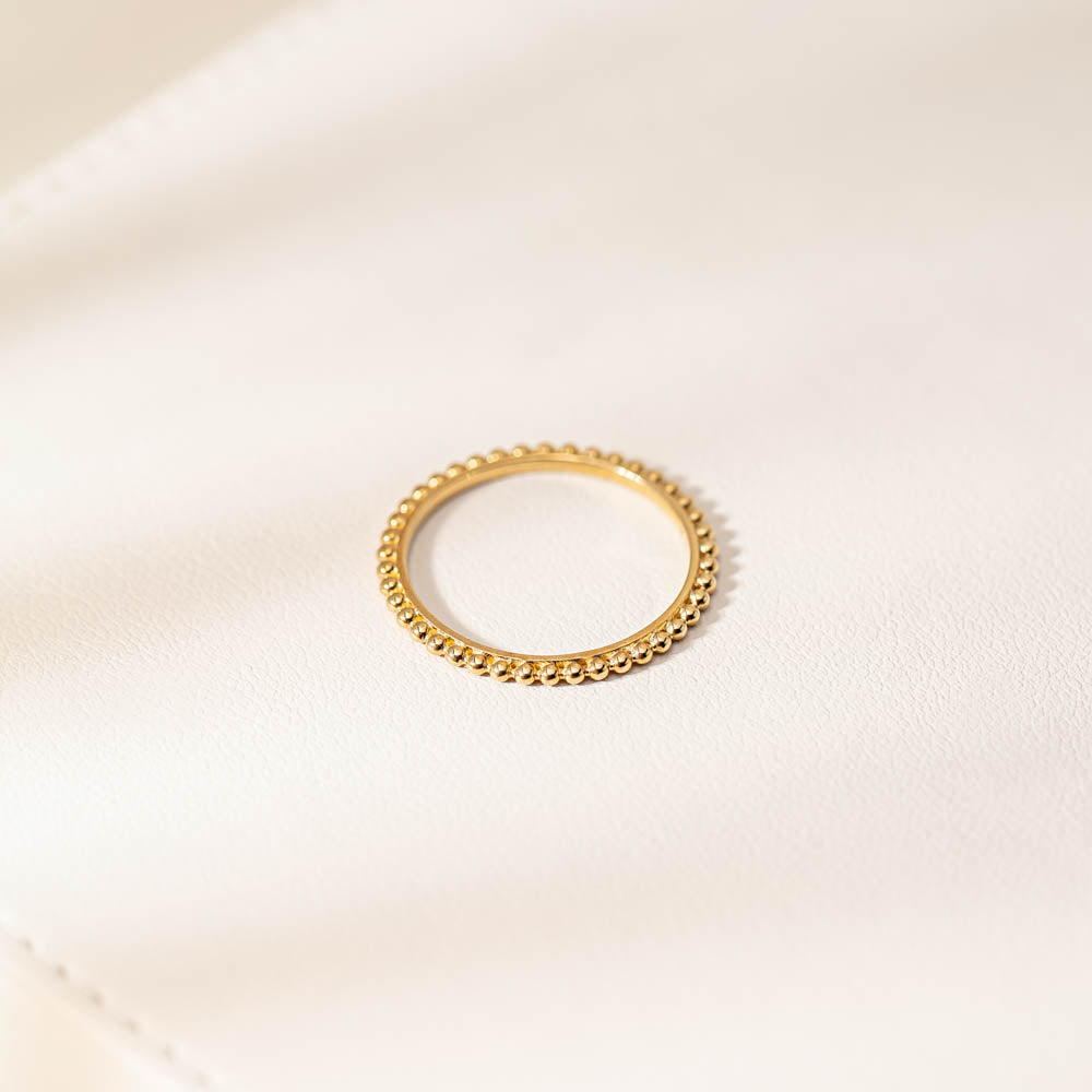 The 9ct yellow gold Boucle band sets light on the distinctive loops on the ring. This contemporary French design can be worn on its own or mixed and matched with other rings from our stacking band collection.