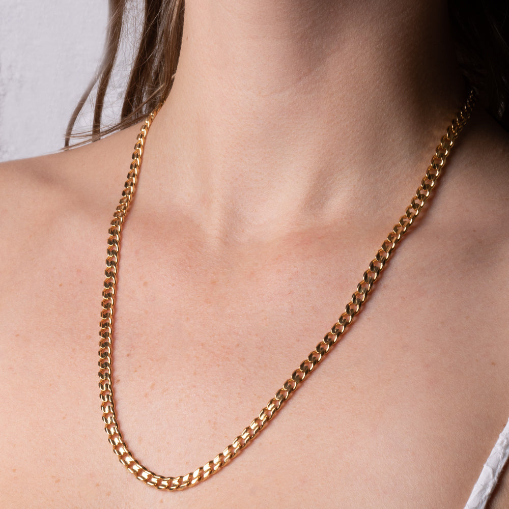 Fashioned out of 9ct yellow gold, this concave bevel curb chain is light weight for comfortable every day wear.