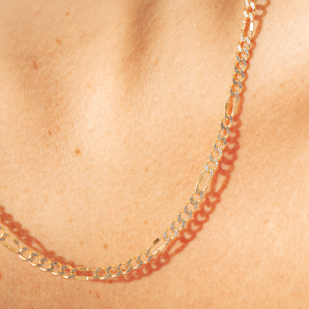9ct Yellow Gold Figaro Two Tone Chain 50cm