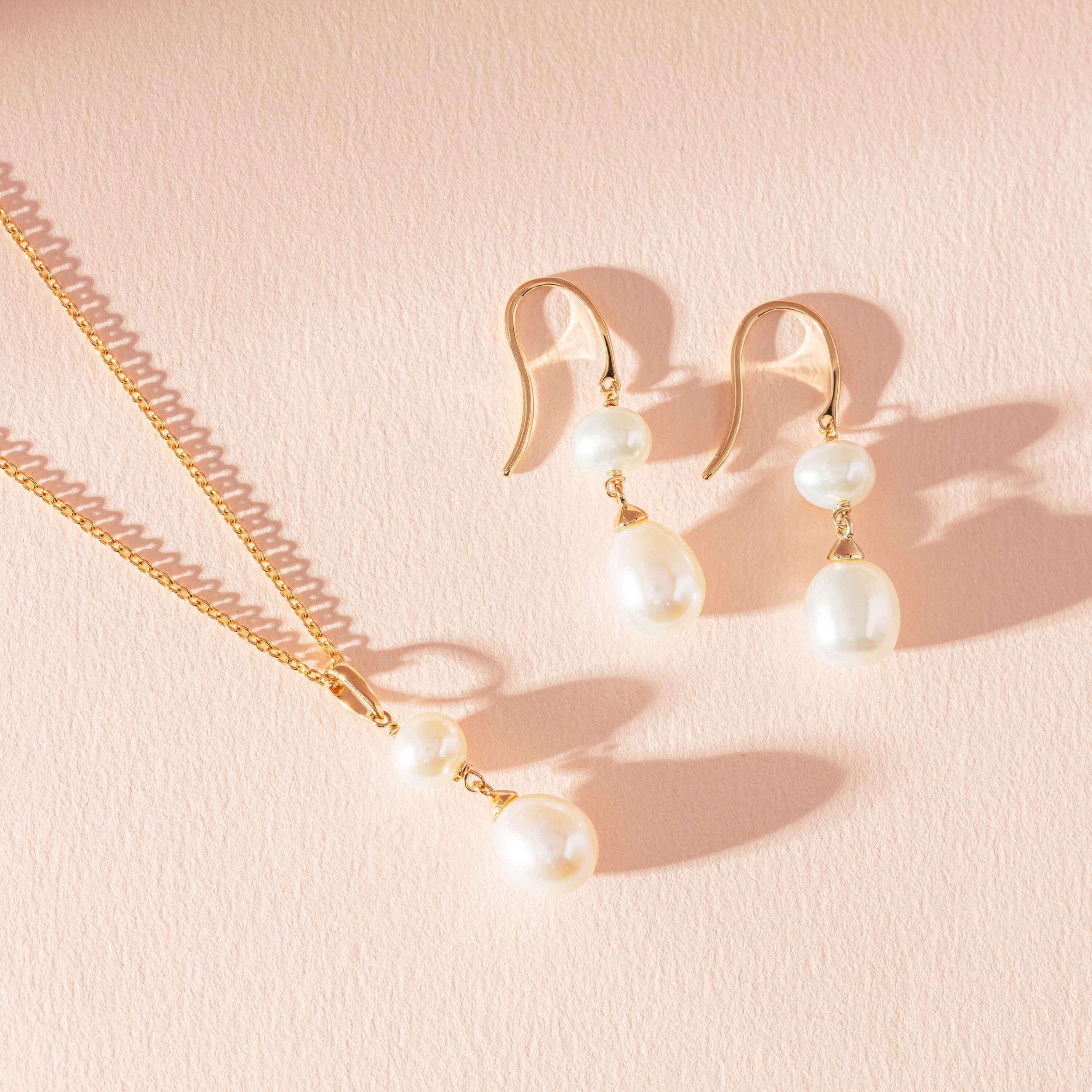 Gracefully dangling freshwater pearls are joined by strands of 9ct yellow gold to create a sense of sophisticated charm in our beautiful Rosie earrings.