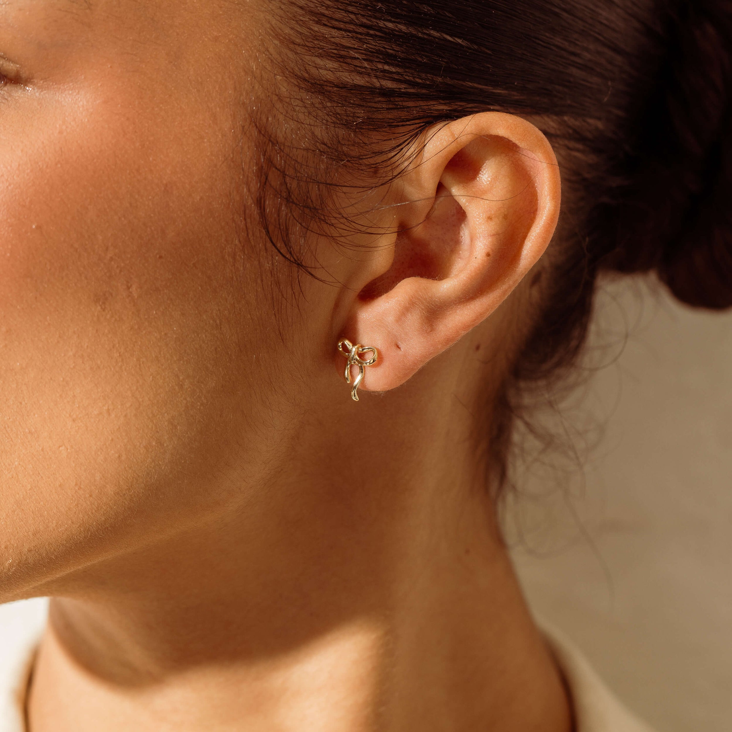 These dainty 9ct yellow gold earrings capture the charm of a perfectly tied bow, reimagined in a sleek, modern silhouette. The softly looping ribbon forms an infinity shape, celebrating never‑ending love, connection, and the special bonds that last a lifetime.