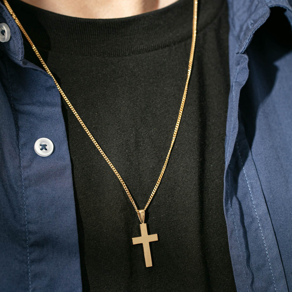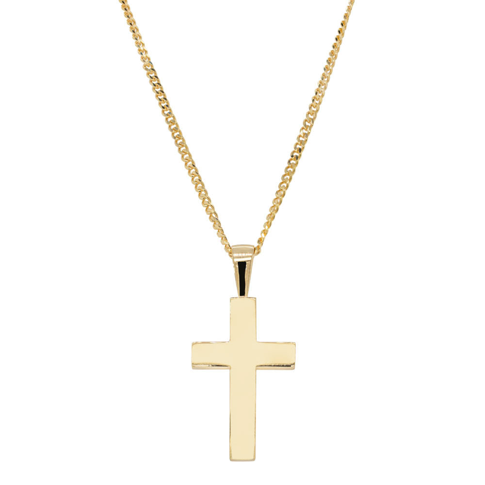 9ct Yellow Gold Cross Pendant with Curb Chain