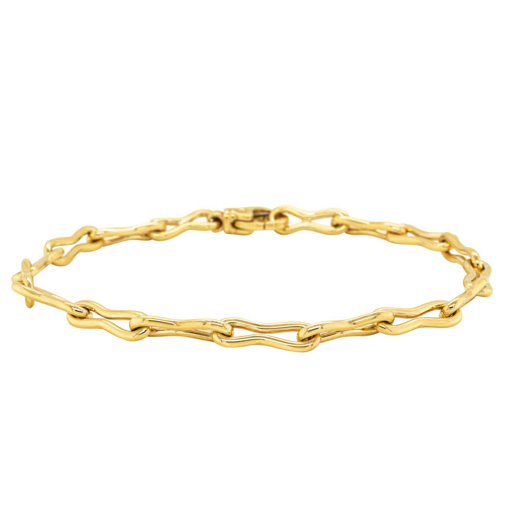 A staple item you need in your gold collection. This stylish piece is crafted in 9ct yellow gold and is constructed with pinched links. This is a classic bracelet that can be worn for any occasion. Simply a must have!
