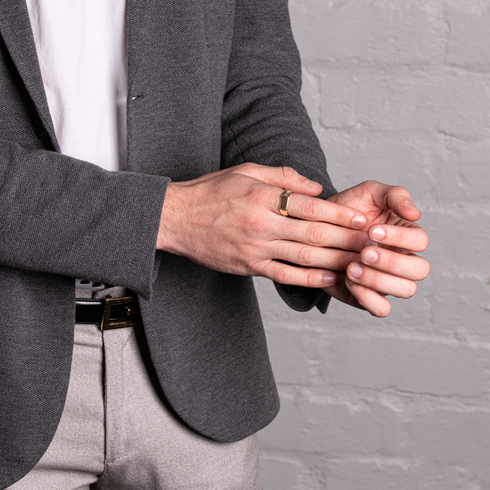 Surprise your man with this classic signet ring. Made in 9ct yellow gold, its rectangular surface is perfect for engraving a personalised message, to make him feel extra special.