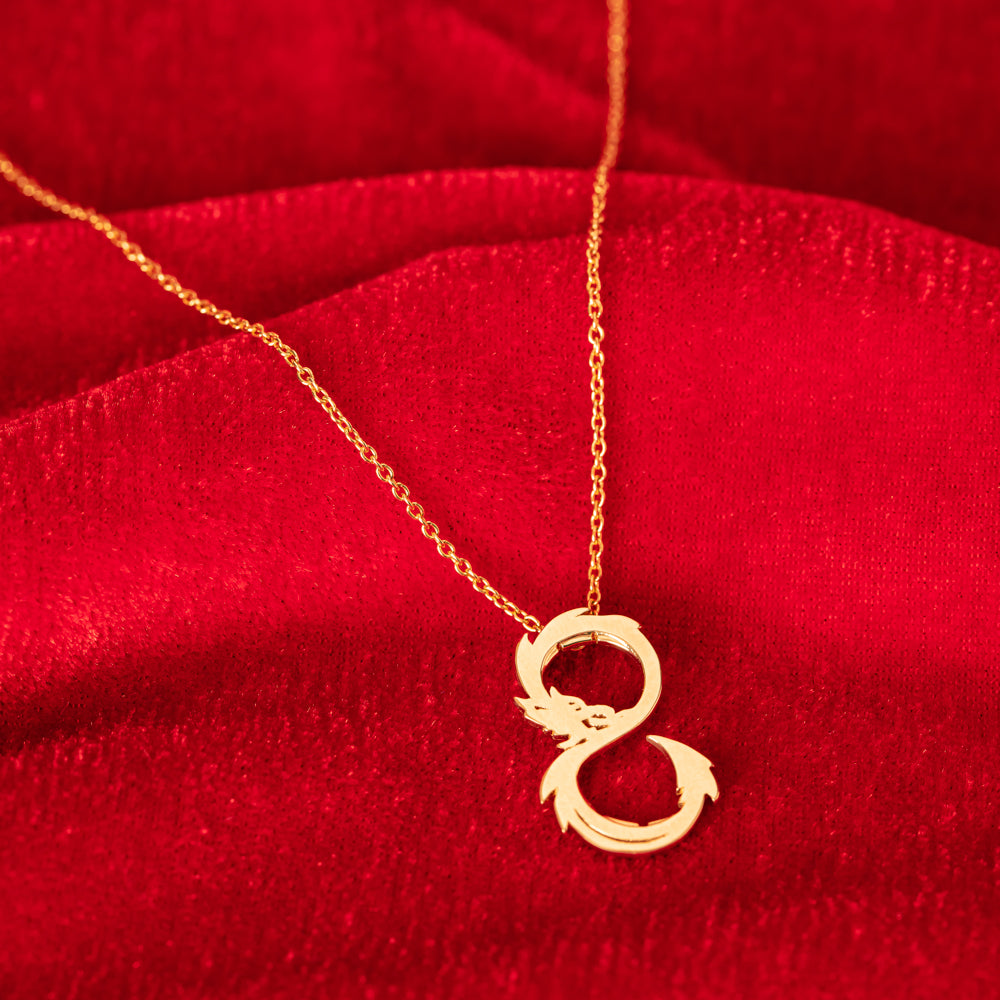 The dragon symbolises strength, good fortune, and success, making it a perfect talisman for the year ahead. Bold yet intricately designed, our dragon gracefully hangs on a fine 9ct yellow gold cable chain.