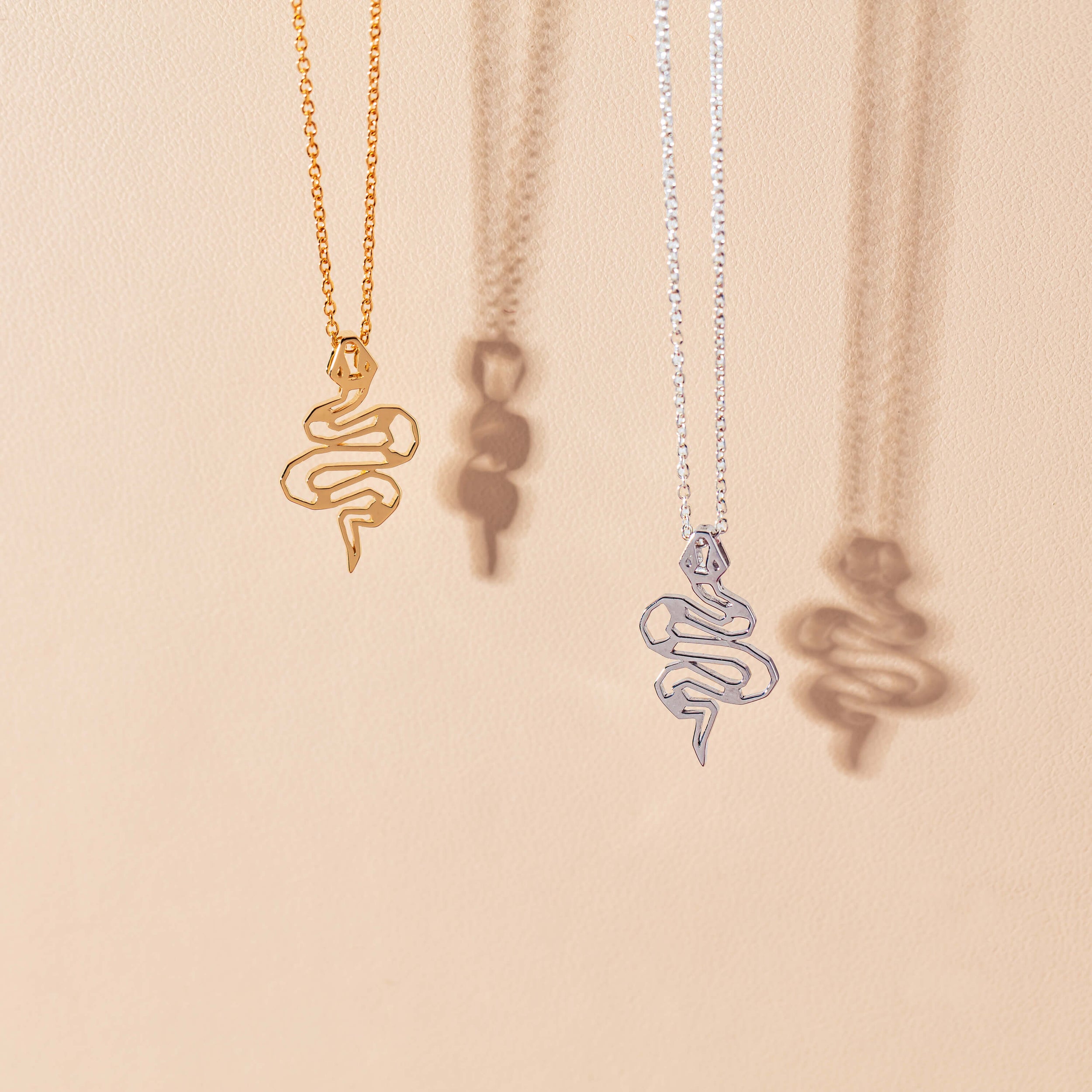 The snake symbolises wisdom, elegance and transformation, making it a perfect talisman for the year ahead. Bold yet intricately designed, our snake gracefully hangs on a fine sterling silver cable chain.