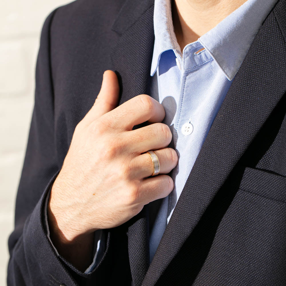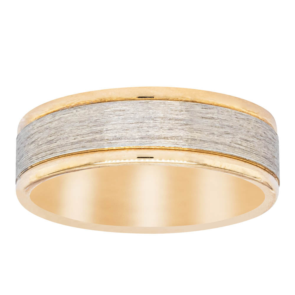 This luxurious 9ct yellow and white gold band is 6mm wide.