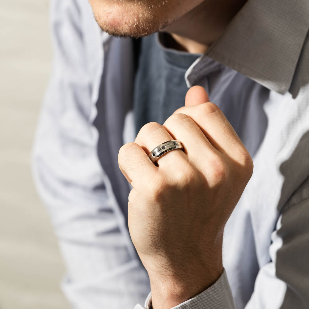 Cobalt Satin-Finish Beveled Edge Black Diamond Set 7.5mm Ring