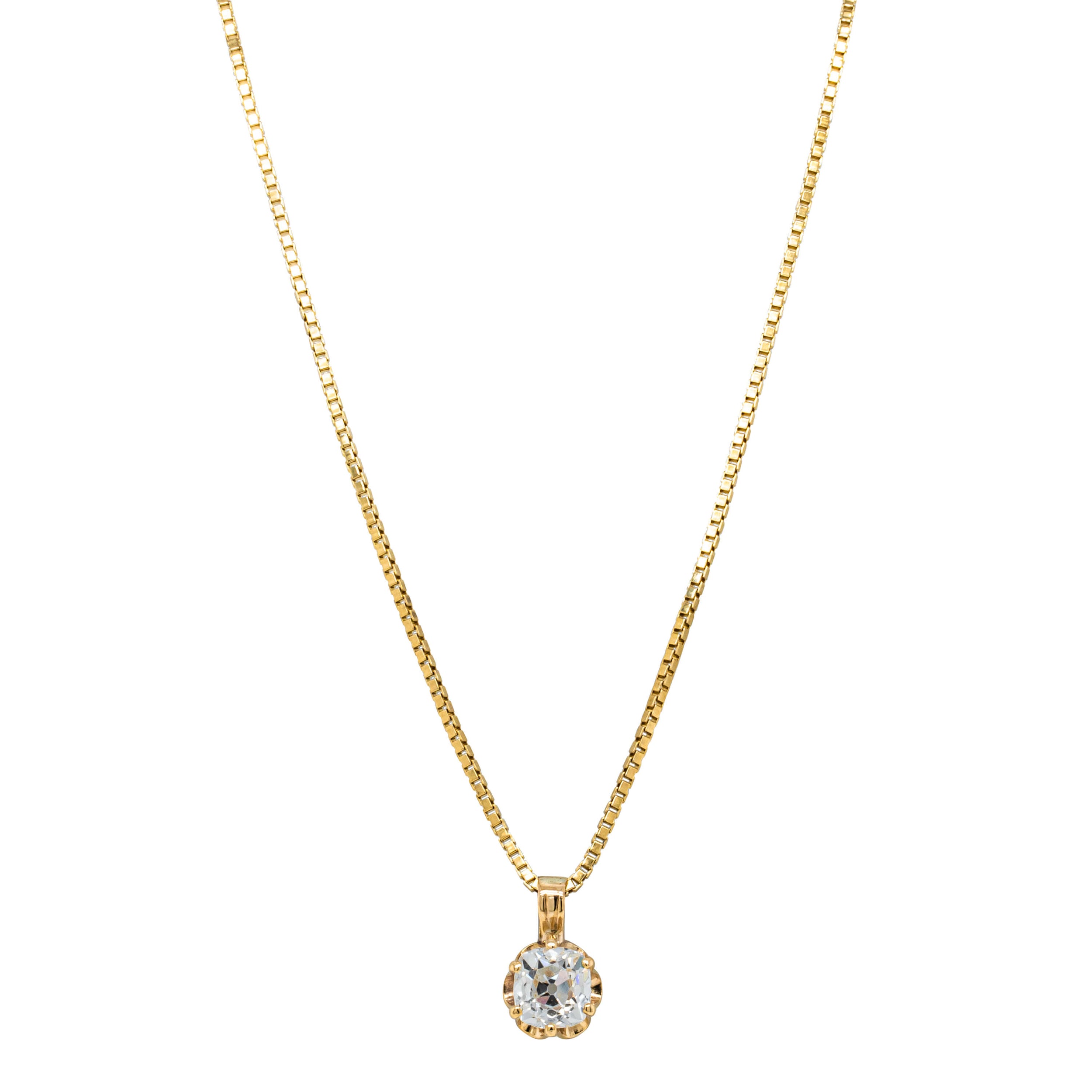 Crafted in shiny 14ct yellow gold, this 1970s Deja Vu pendant features a stunning old mine cut diamond. Perfect for adding a touch of elegance and sophistication to any outfit, this pendant is a timeless accessory that will never go out of style.
