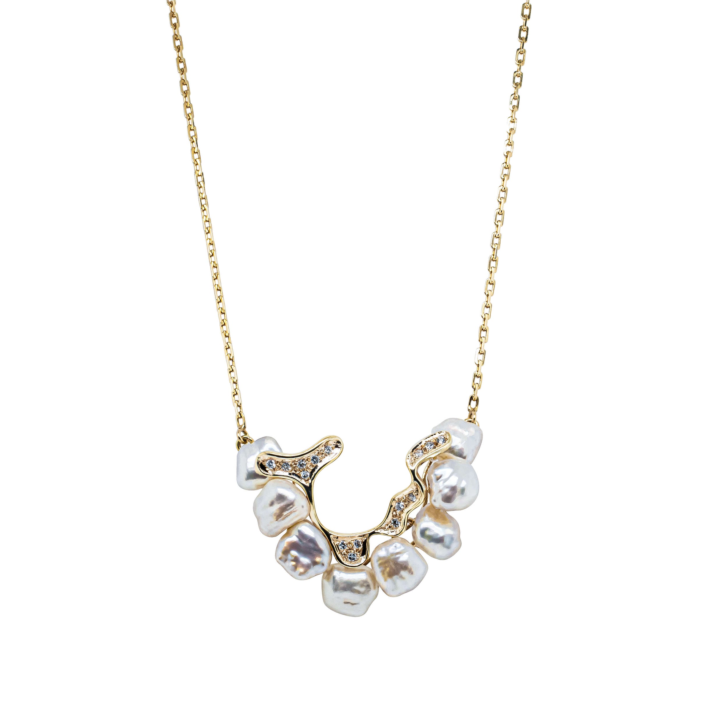 Deja Vu 14ct Yellow Gold Keshi Pearl & Diamond Necklace
