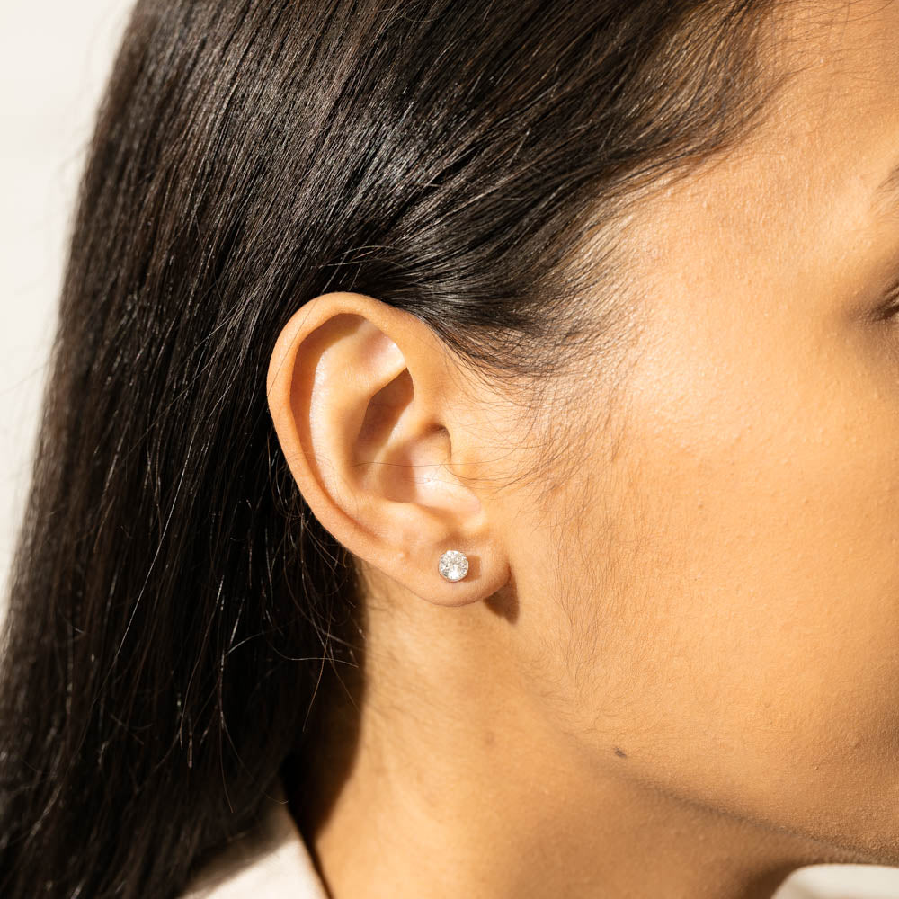 Carefully set in shining 17ct white gold, this dazzling duo features two round brilliant cut diamonds resting in four claw settings. These diamond studs are sure to become a treasured forever piece that will add a touch of luxury.