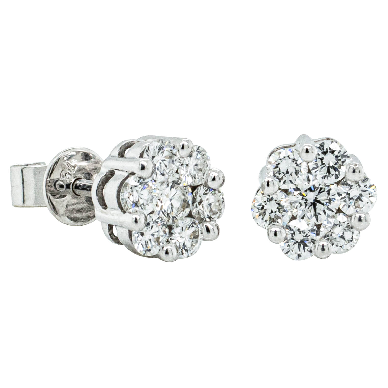 Deja Vu 18ct White Gold 1.00ct Diamond Flower Cluster Stud Earrings