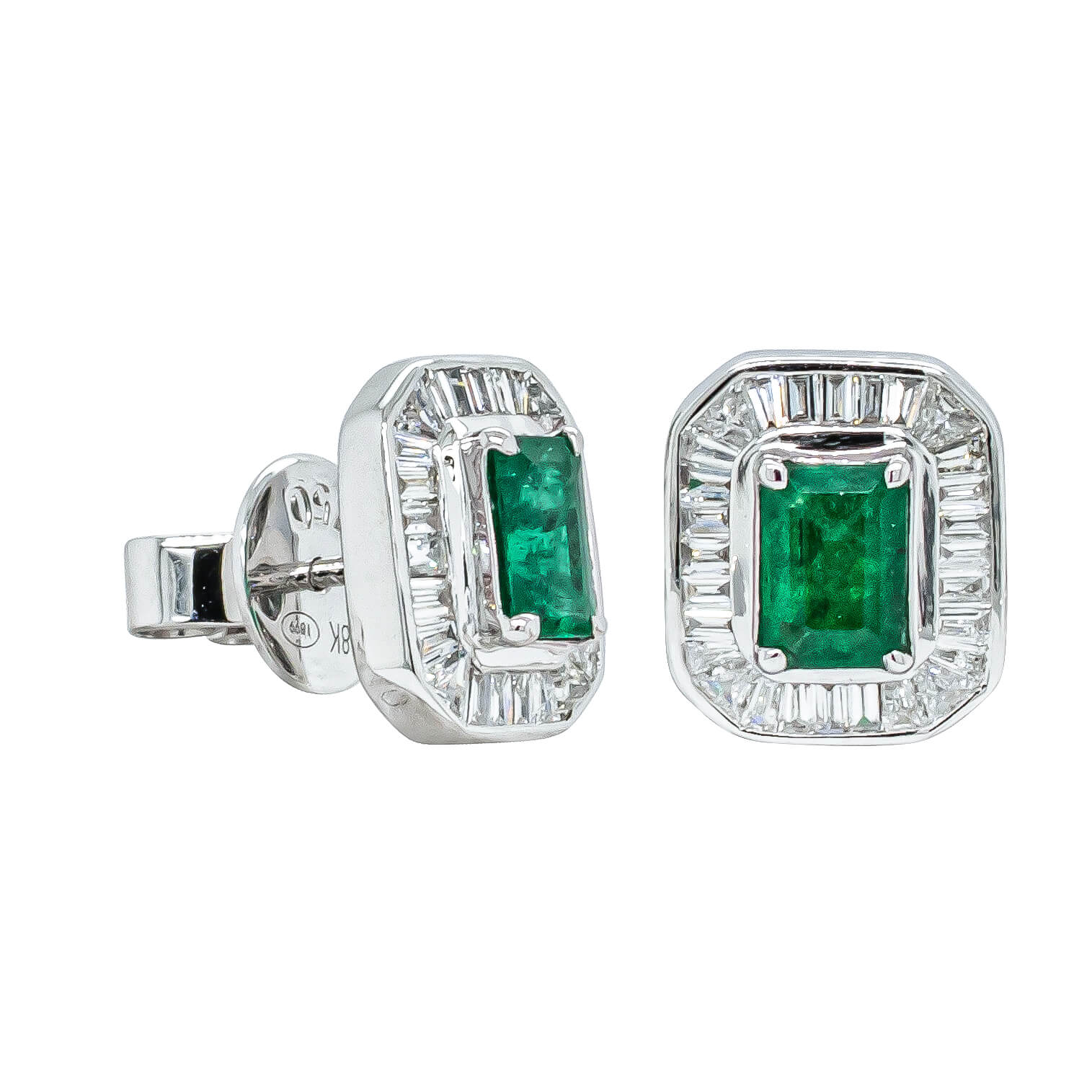 Deja Vu 18ct White Gold Emerald & Diamond Earrings