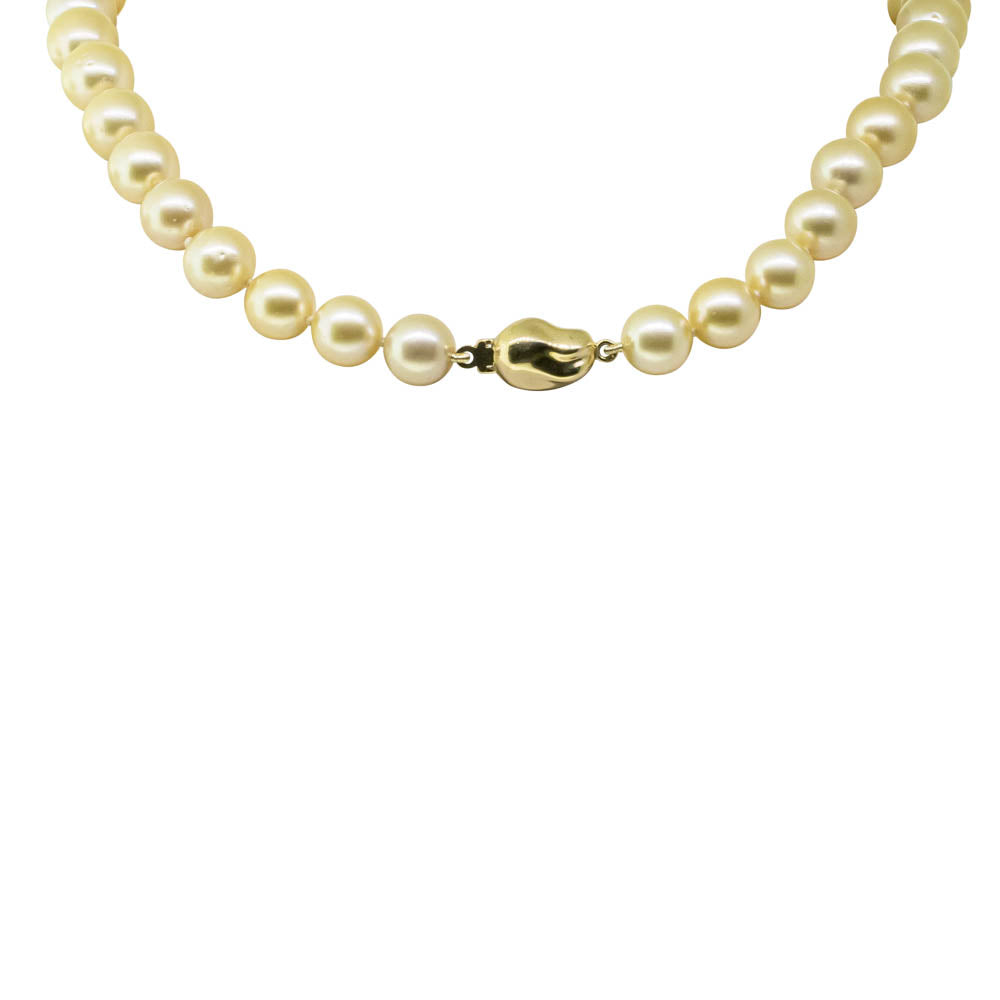 This beautiful Deja Vu South Sea pearl strand featuring forty-three creamy golden pearls is the perfect addition to any jewellery collection. Finished with an 18ct yellow gold clasp and individually knotted, this pearl strand will elevate your style to the next level.
