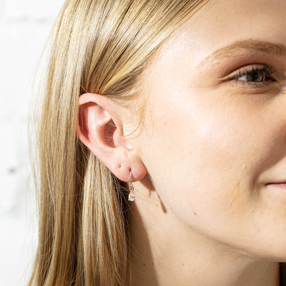 Shine bright wearing this pair of diamond drop earrings. Beautifully crafted with in 18ct yellow gold, these pear cut diamonds hang from luxurious platinum hooks. You will light up the room wearing these lovely earrings.
