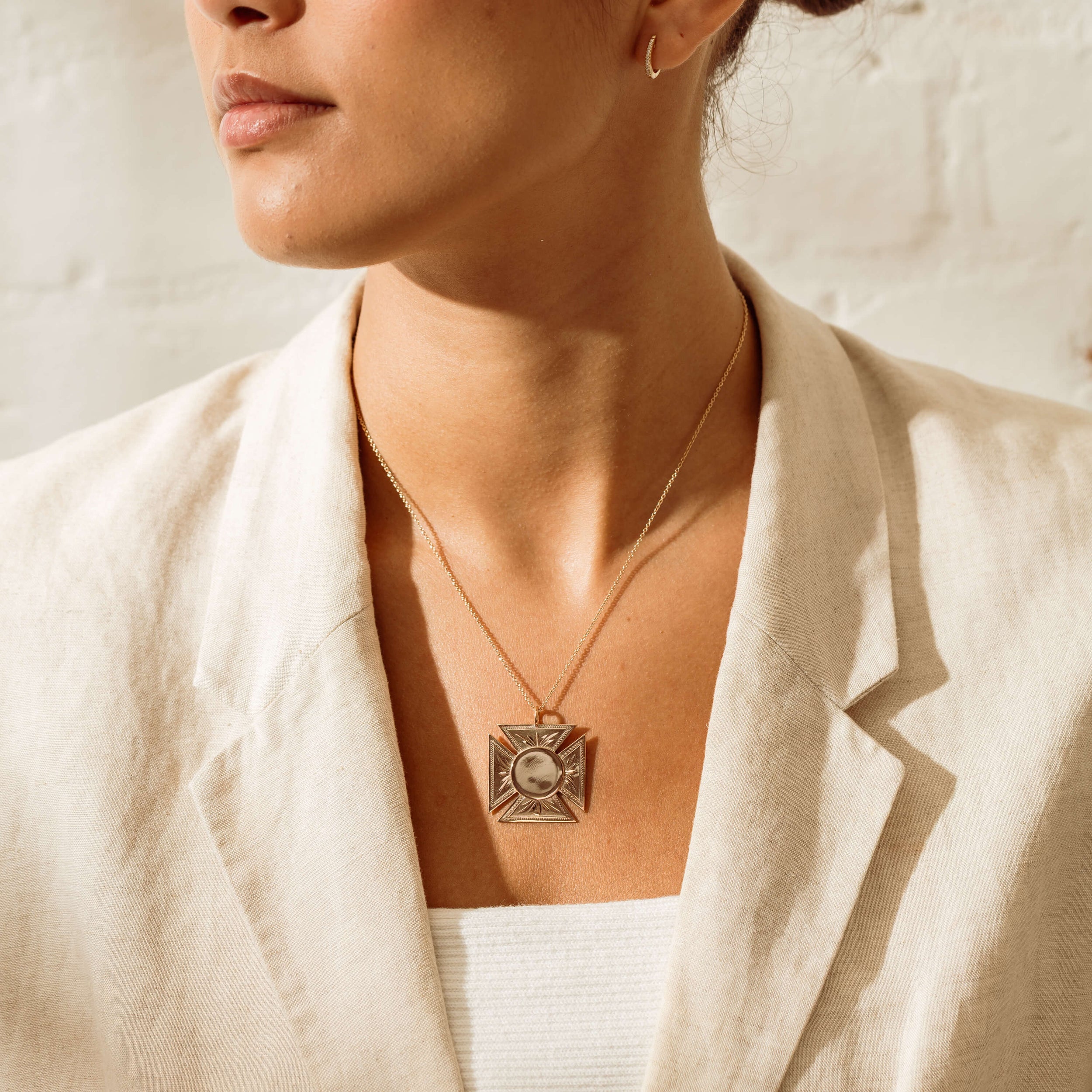 Rich in meaning, the Maltese cross has long been associated with courage, protection, and service, making this piece especially significant as a personal talisman or heartfelt gift. The pendant is suspended from a 45cm 9ct yellow gold cable link chain, allowing it to sit neatly at the neckline and layer effortlessly with other favourites.
