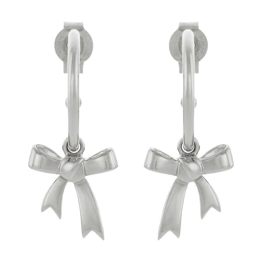The esteemed Karen Walker bow, tied just-so, is reimagined as a pair of sterling silver hoop earrings.