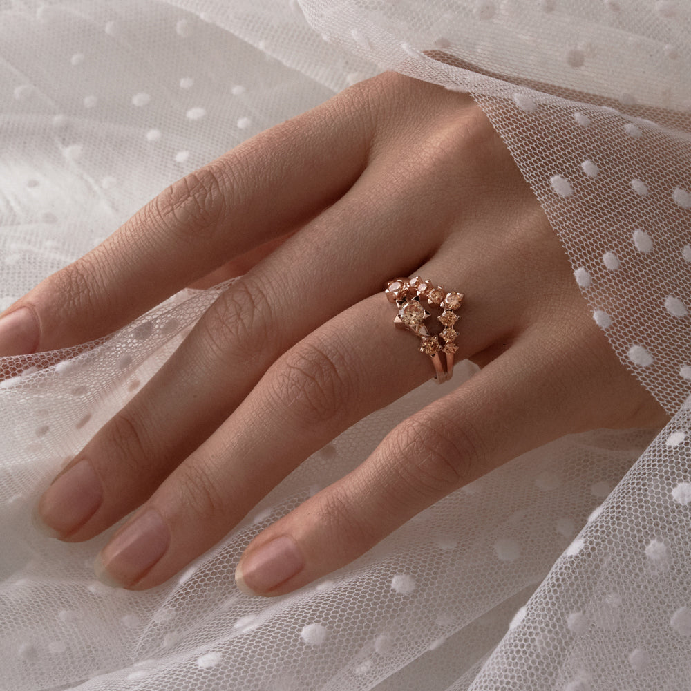 The crowning glory of the Paradise Suite, the Paradise Band forms a fortuitous wishbone band crusted with the client’s choice of white, black or champagne diamonds. Totalling 0.39 carats, a tiara of seven ascending round brilliant diamonds twinkle, set in Karen Walker's custom arrow claw setting.