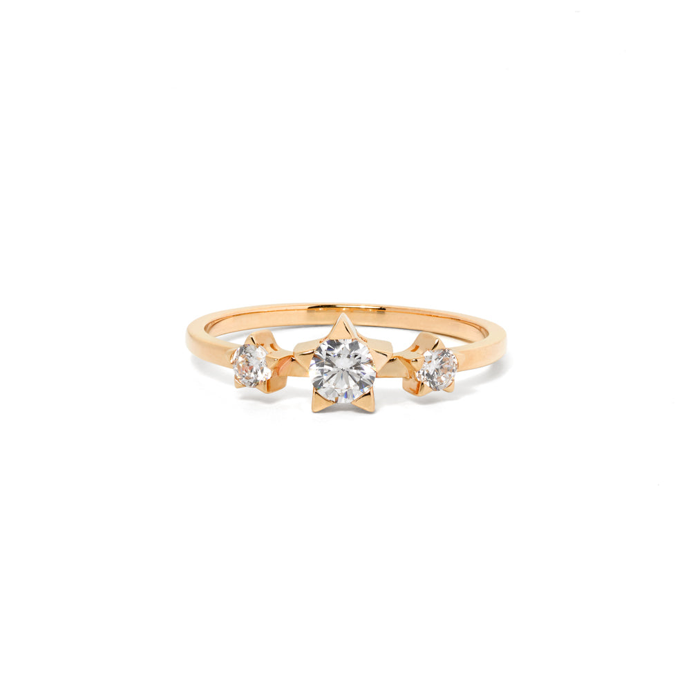 Looking this time to Orion’s Belt, the Paradise Ring features a trio of stars set with brilliant round diamonds, star gazers rejoice with the option of glittering white, champagne or black diamonds.