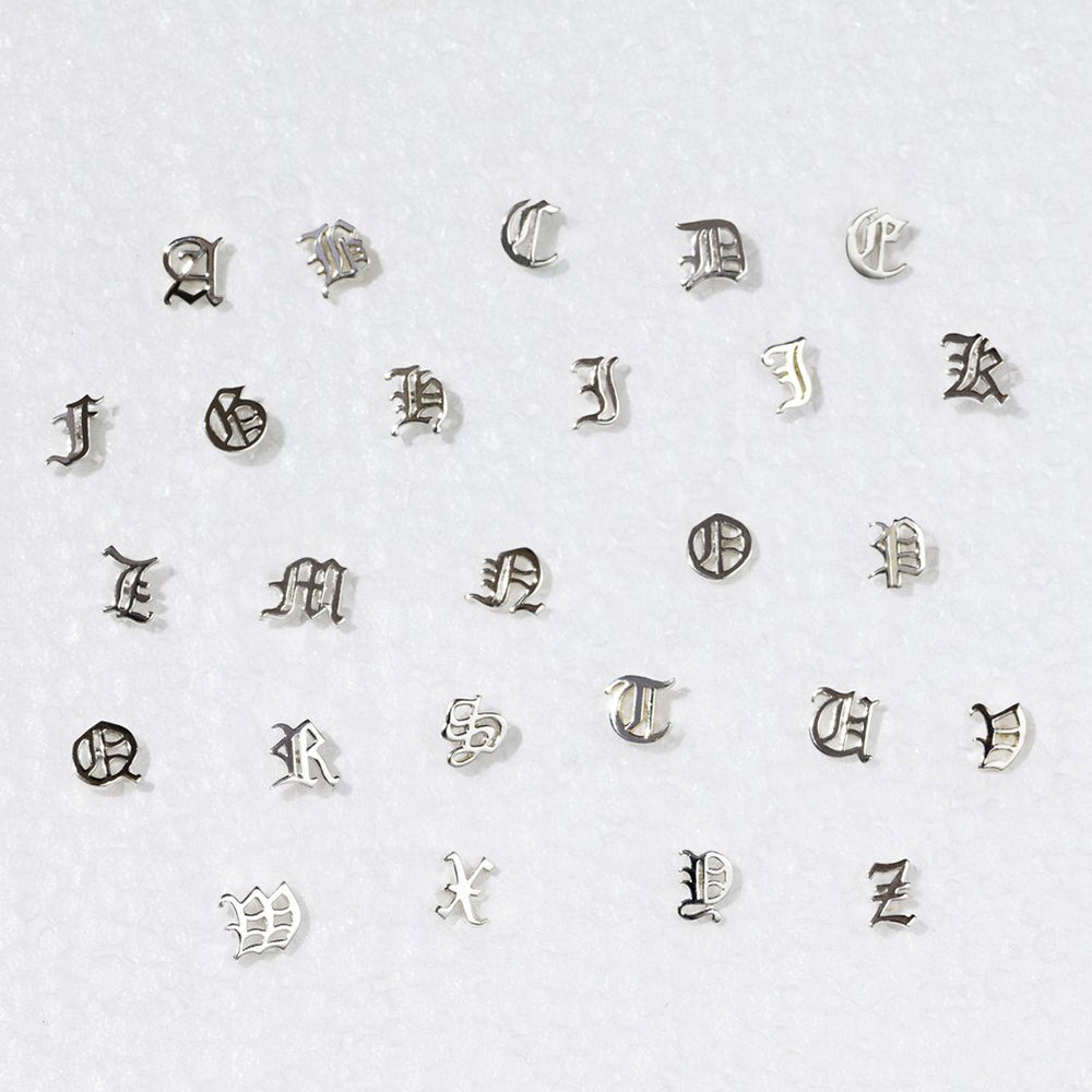 A single stud in a letter of your choice. Perfect on its own, or stacked across multiple piercings to spell something special.