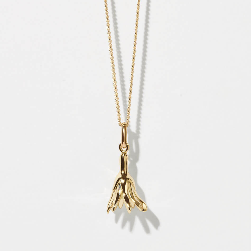 One delicate, bell-like flower suspended from a fine chain, a symbol of quiet transformation and the tender strength of nature.