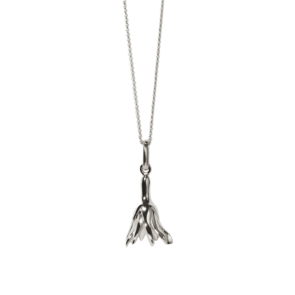 One delicate, bell-like flower suspended from a fine chain, a symbol of quiet transformation and the tender strength of nature.