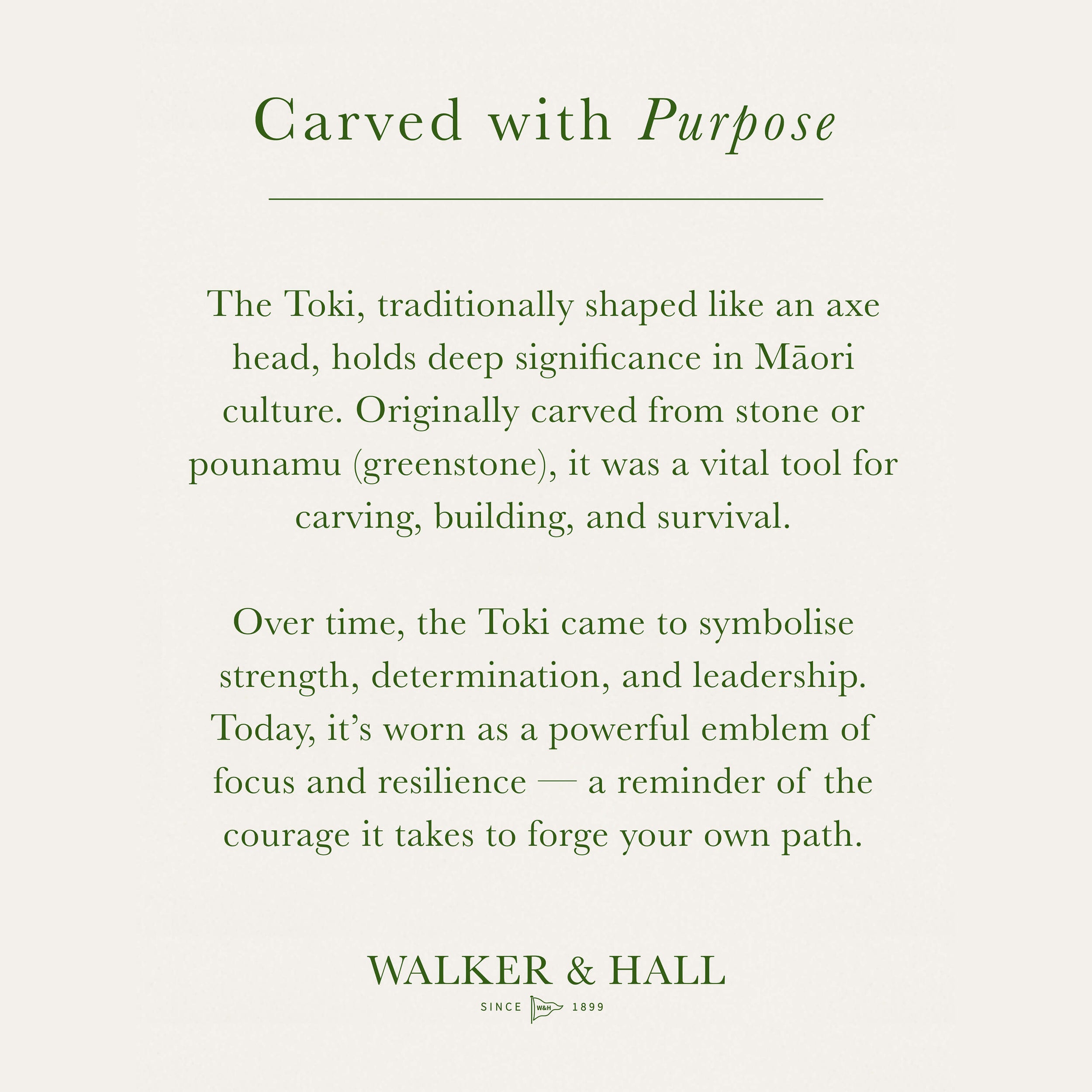 Shaped in the traditional Toki (adze head) form, it symbolises strength, determination, and leadership in Māori culture. Suspended on a black cord, this Kahurangi Toki is a cherished taonga, perfect for those seeking inspiration and a special connection to Aotearoa’s heritage.