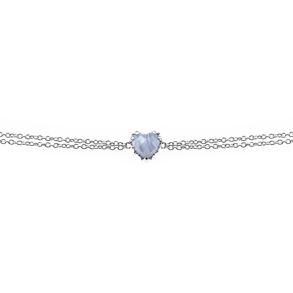 Love Claw Bracelet crafted in high polish sterling silver. Fine double chains are met with a natural Blue Lace Agate. Each natural stone presents unique hues – no two are the same.
