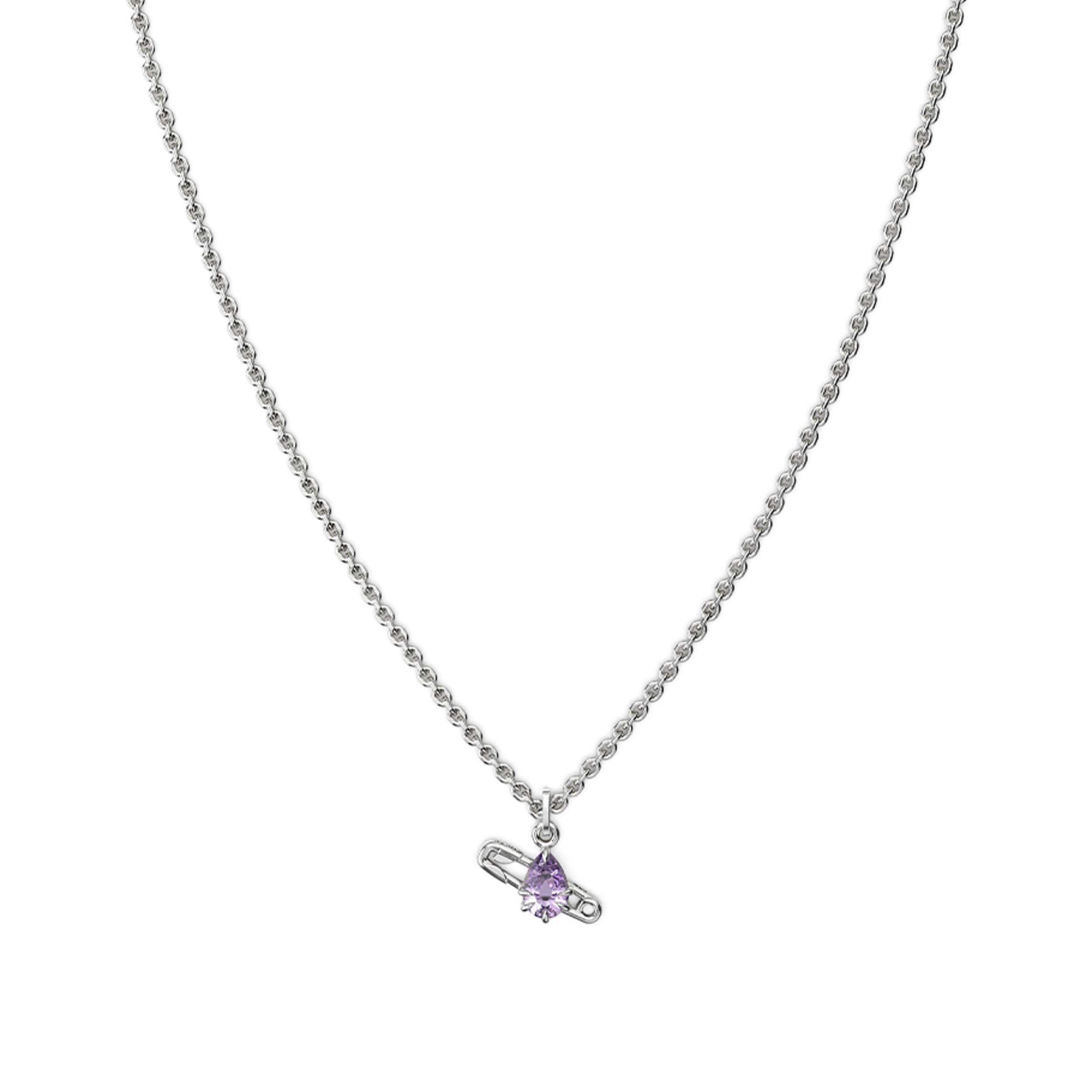 The Purity Pin Necklace by Stolen Girlfriends Club features a claw-set pear-shaped pink amethyst stone - fragile heirlooms made fierce, re-imagined with a punk edge. This elegant necklace is made from solid sterling silver.