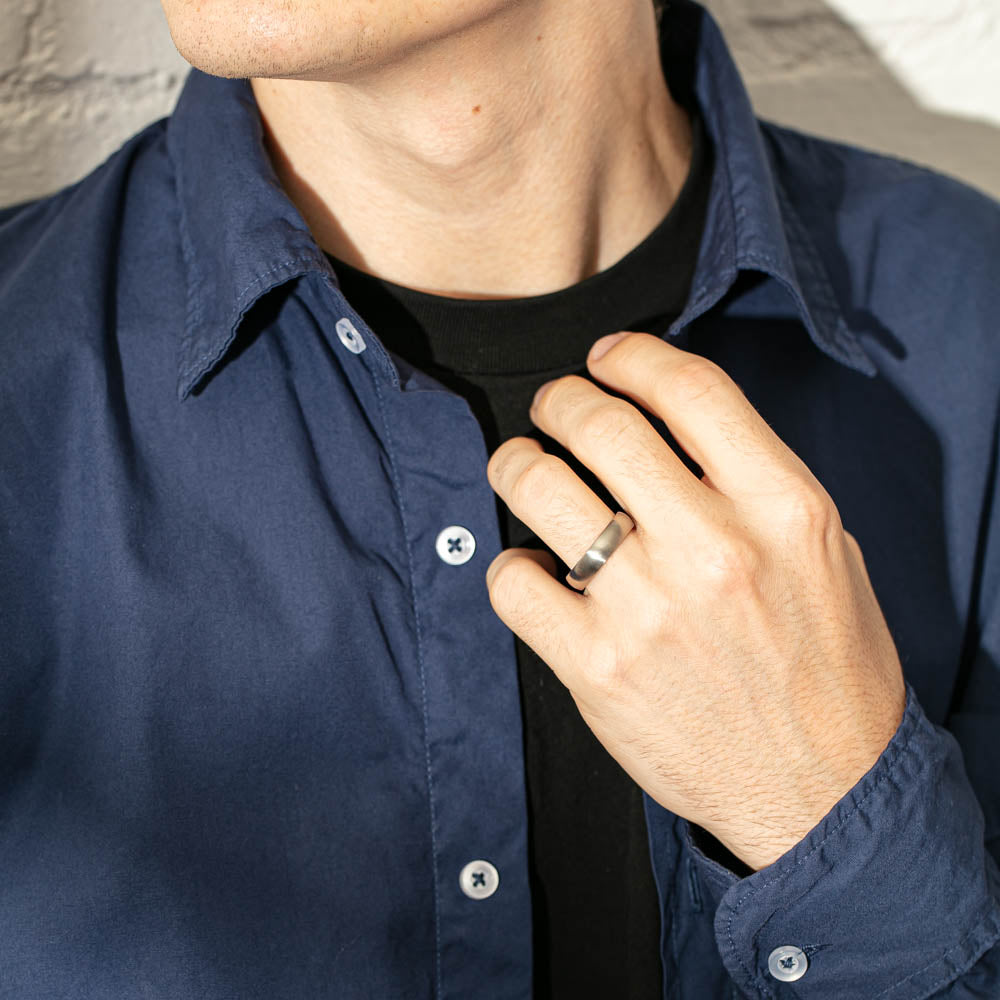 This titanium band is simple but stylish with a rounded band, brushed matte finish and polished edges.