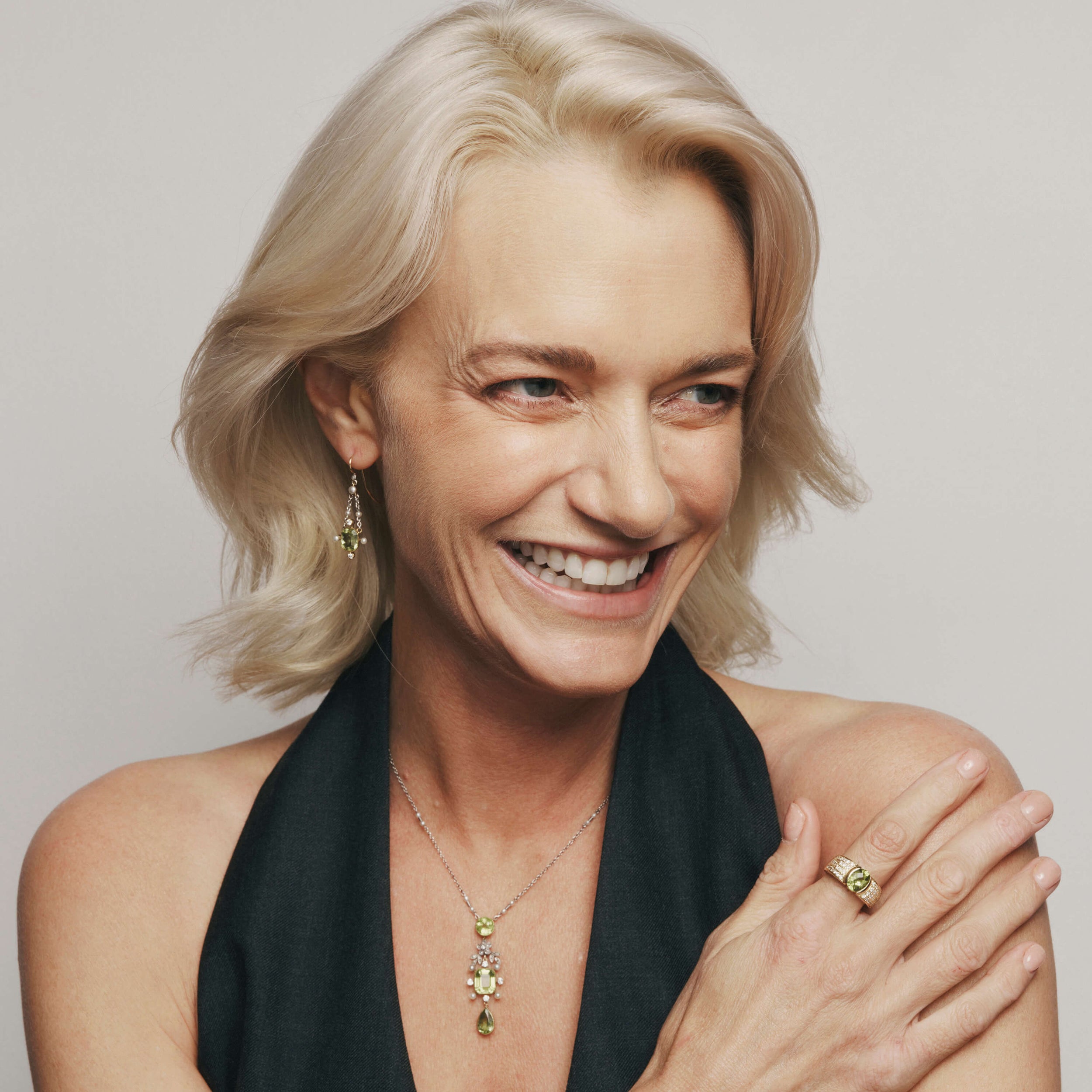 Model wearing natural diamond and gemstone rings, earrings and bracelet from the Curated Collection