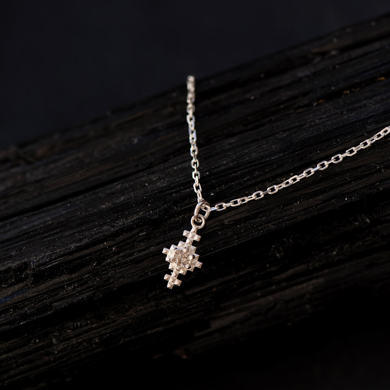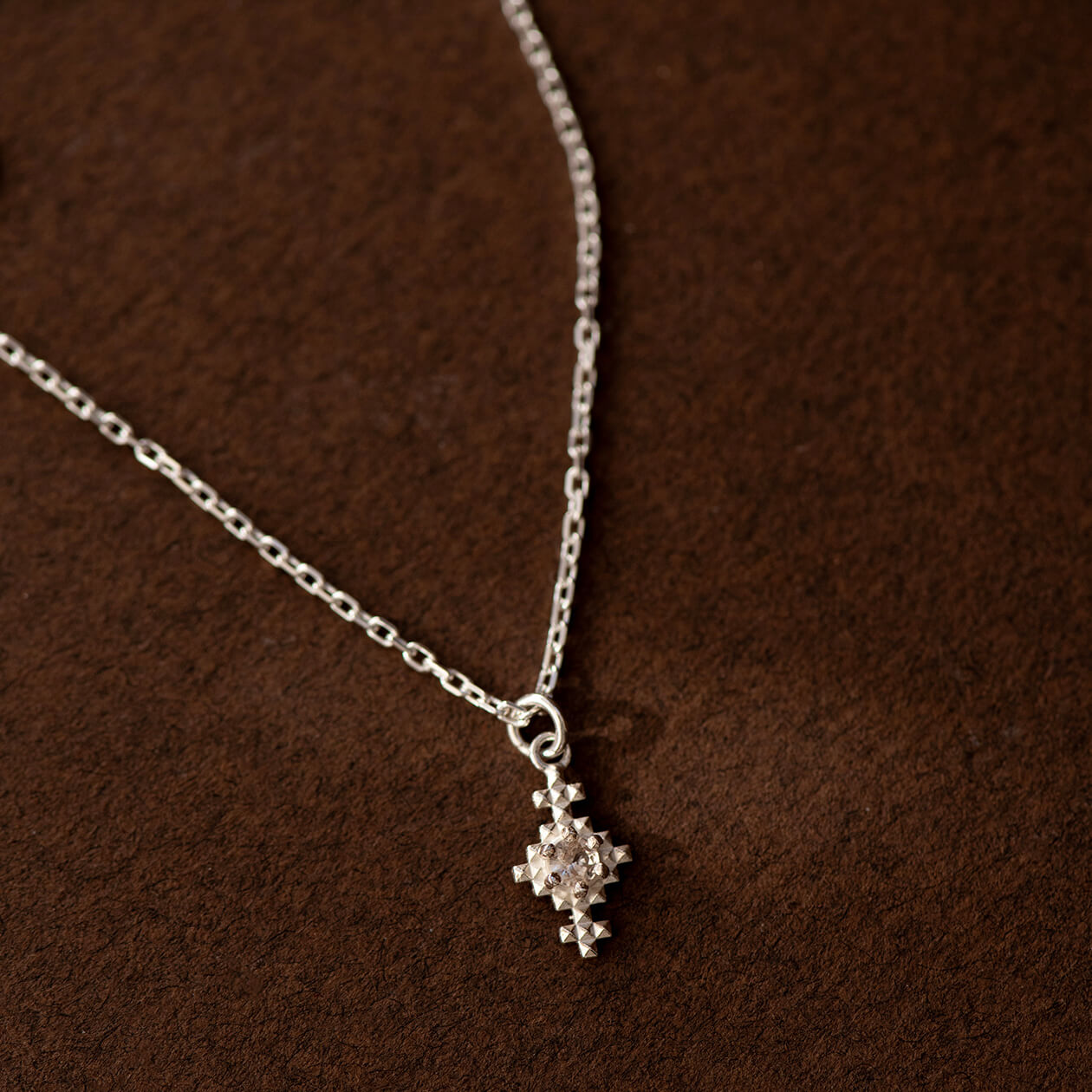 Indie is a textured pendant with a small Peach Zircon nestled into the centre. Suspended from our lovely box chain, the warm, earthy tones of the Peach Zircon evoke a sense of calm and elegance, making Indie a blend of subtle grace and unique charm.